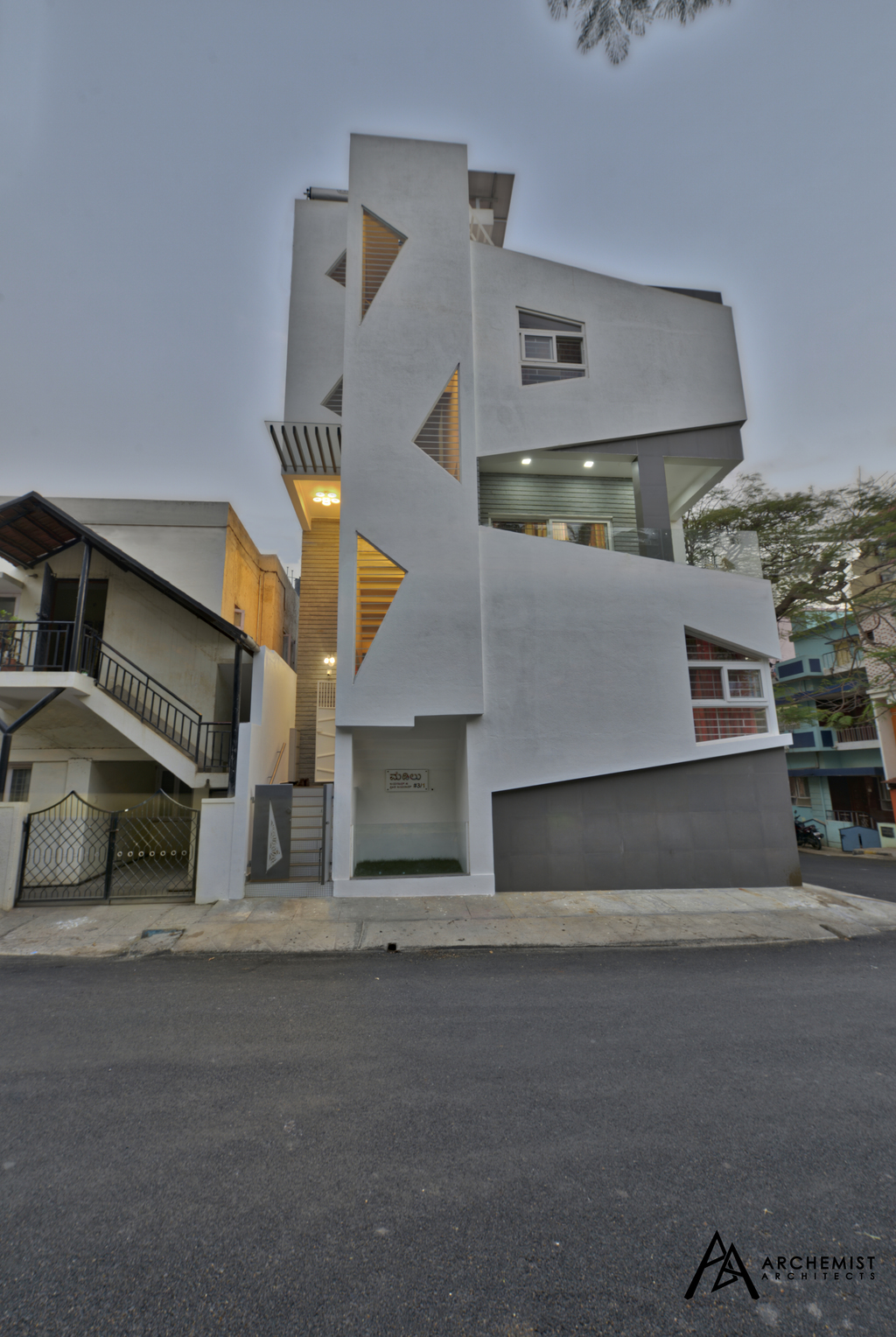 Nestled on a compact 29’ x 26’ north-west corner plot in the dense urban fabric of Rajajinagar, West Bangalore, The Triangle House is a bold experiment in maximizing space while making a distinct architectural statement. Designed for a young family of four, the primary challenge was to create a spacious and airy home within a constrained footprint, ensuring that the interiors never felt congested. The clients also desired a structure that would contribute to the modern identity of the street while reflecting their dynamic lifestyle.