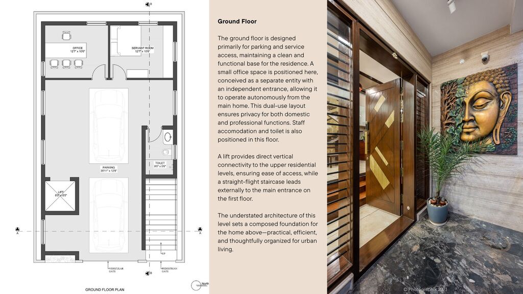 Nestled in the dense fabric of Bangalore’s residential core, this 1500 sq. ft. site presented a unique challenge—how to craft a tranquil oasis amidst the city's chaos. With a street-facing east side and neighboring houses on both east and west, the key design objective was to create a spacious, light-filled home that fosters a sense of calm and well-being.