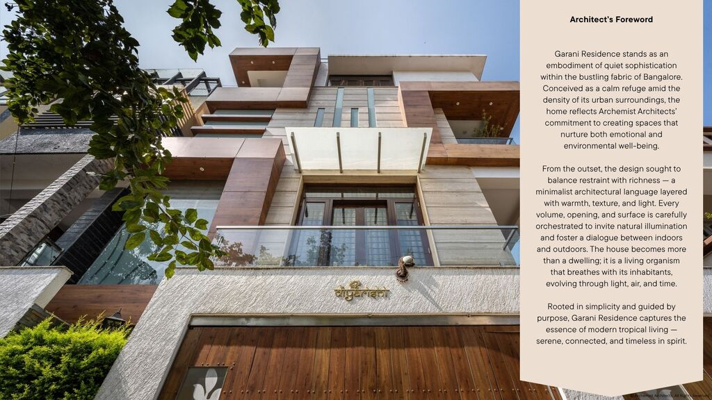 Nestled in the dense fabric of Bangalore’s residential core, this 1500 sq. ft. site presented a unique challenge—how to craft a tranquil oasis amidst the city's chaos. With a street-facing east side and neighboring houses on both east and west, the key design objective was to create a spacious, light-filled home that fosters a sense of calm and well-being.