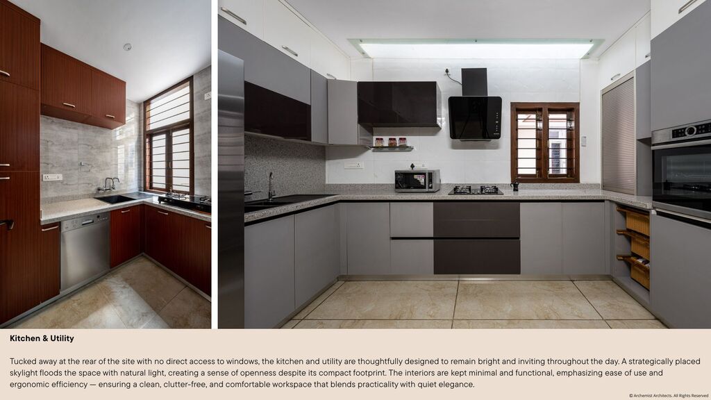 To create a dynamic living experience, multiple pockets of light were introduced through strategically placed skylights. These illuminate the interiors throughout the day, creating a dance of natural light and shadows that shifts with time, enhancing spatial perception.