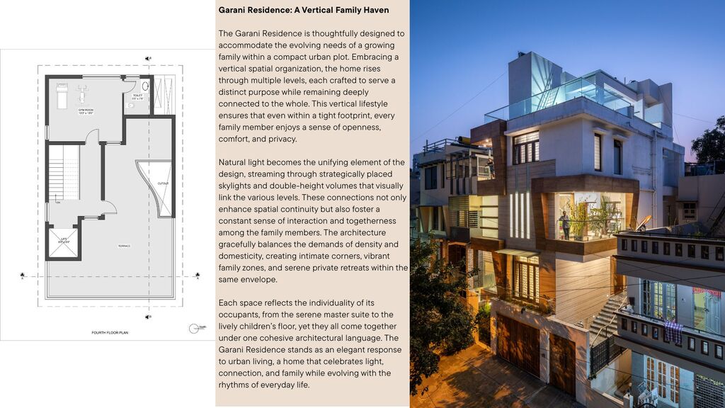 Rather than segregating spaces, the layout revolves around a central double-height volume, allowing visual and verbal connectivity across levels. Family members can interact easily, fostering a sense of togetherness and fluidity.